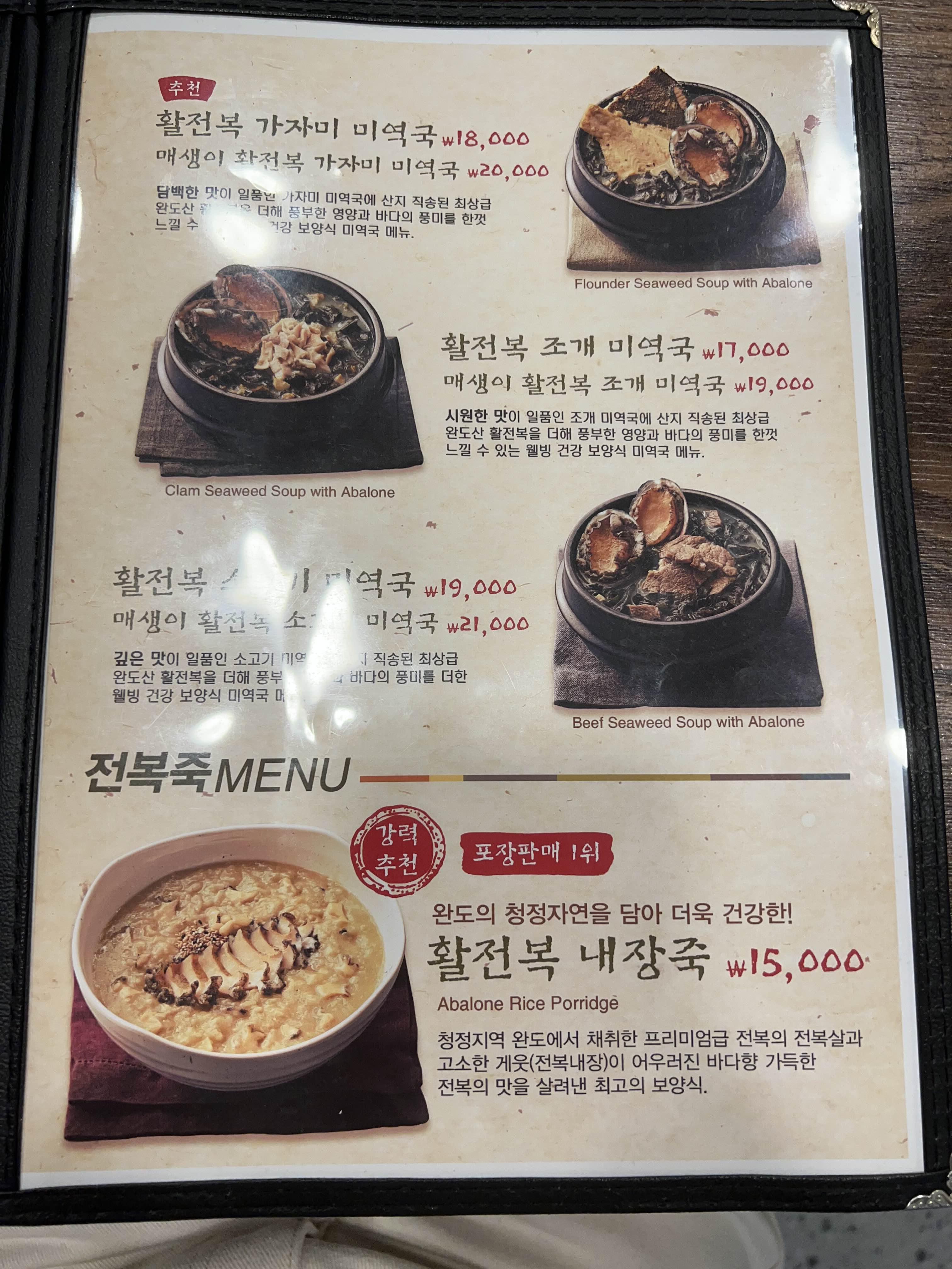 제일 저렴한 메뉴가 조개 미역국이고,